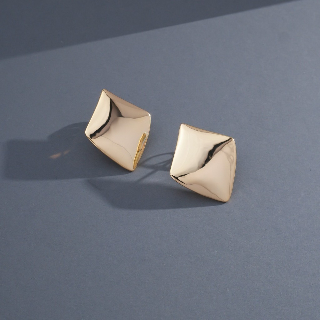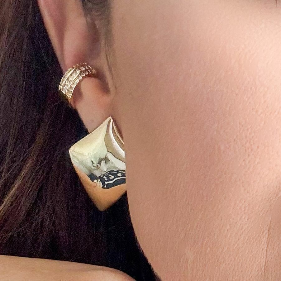 Brinco liso em formato de losango. Possui um design atemporal e contemporâneo e se destaca pelo seu brilho e design moderno. Permite diversas combinações e mix.