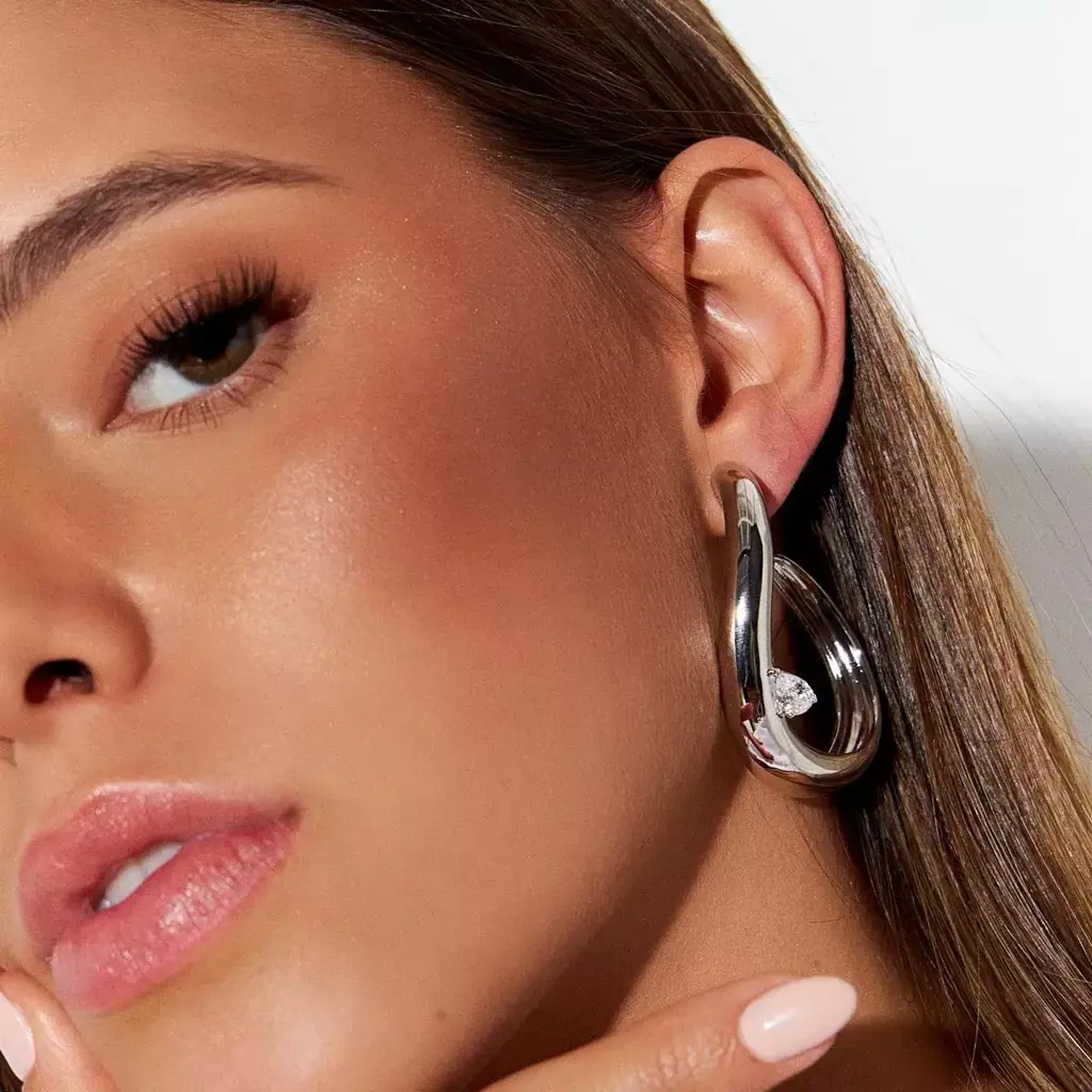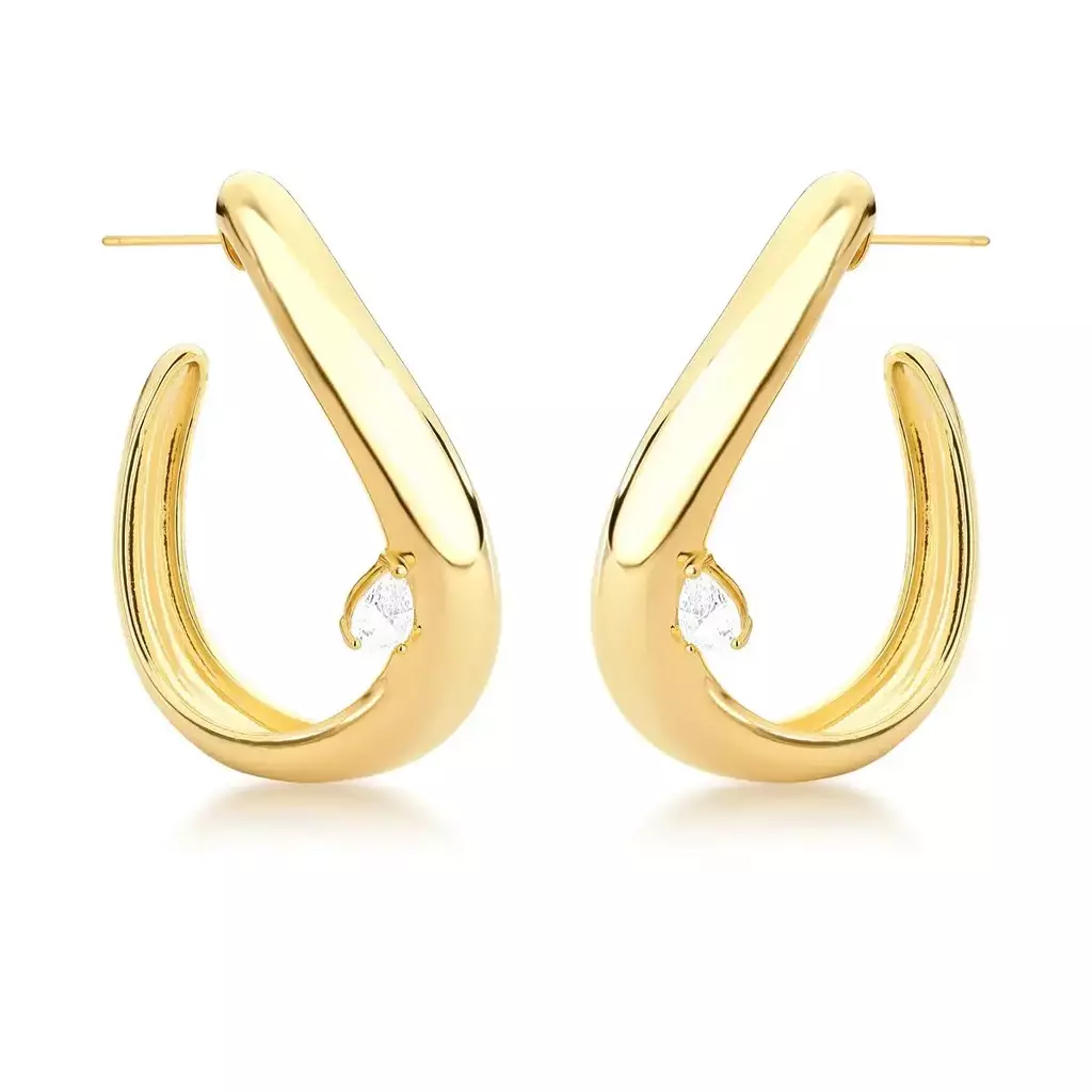 Meia argola curva e lisa, com acabamento curvo e um cristal transparente. Seu design irregular traz para a peça conexão perfeita entre modernodade e sofisticação.